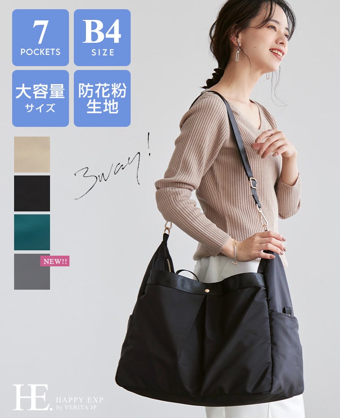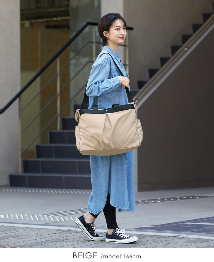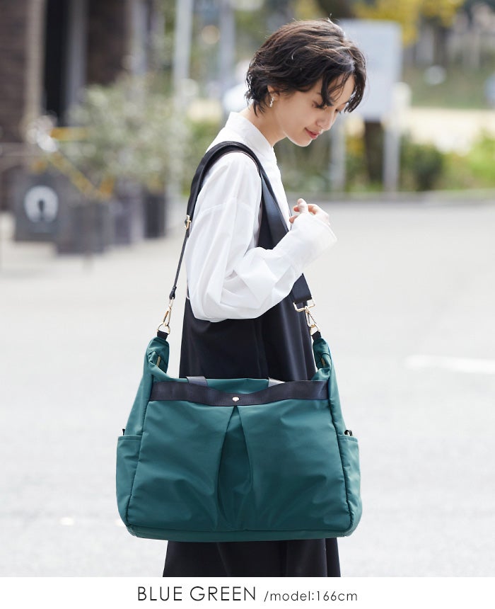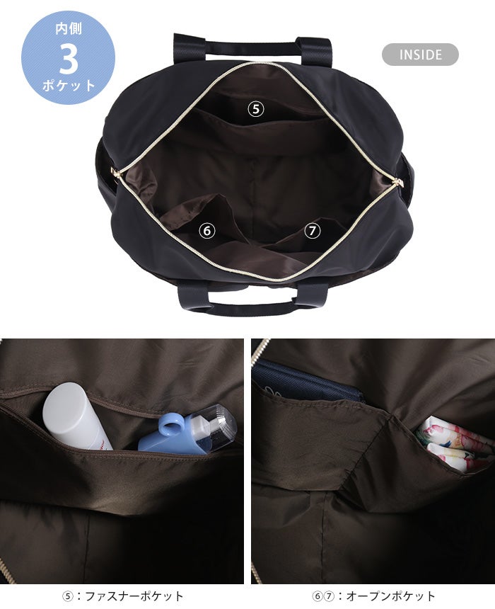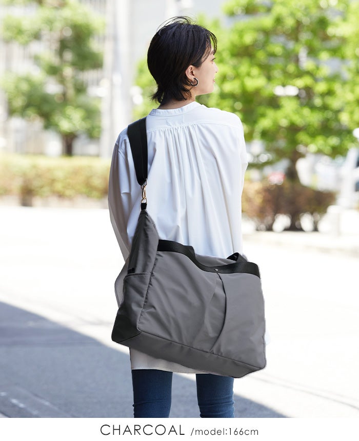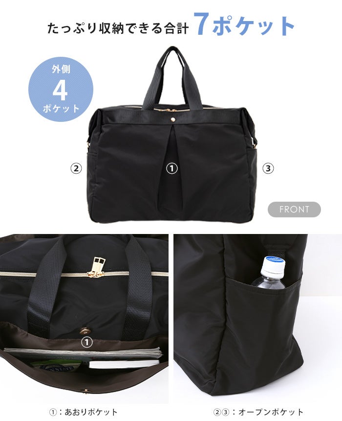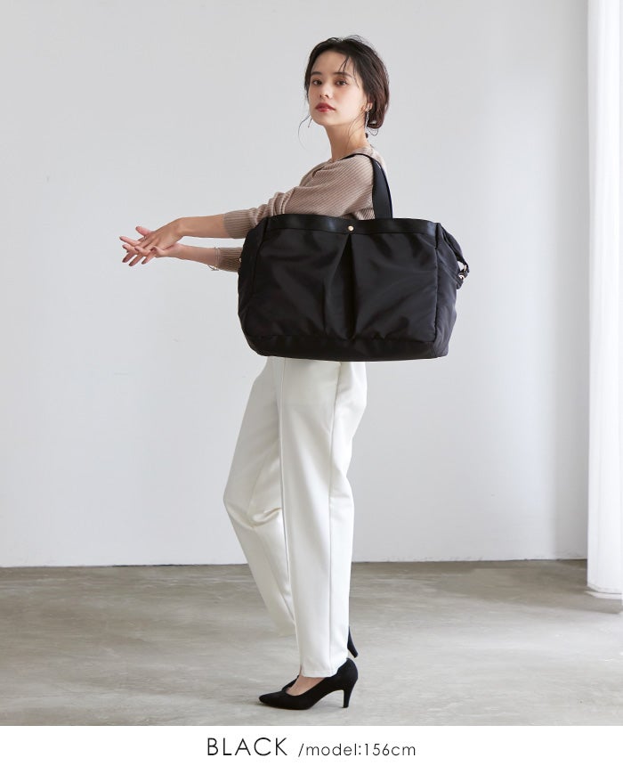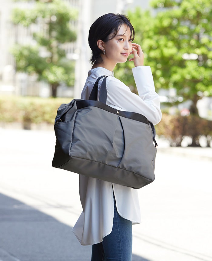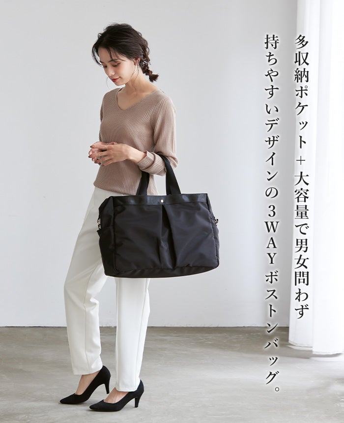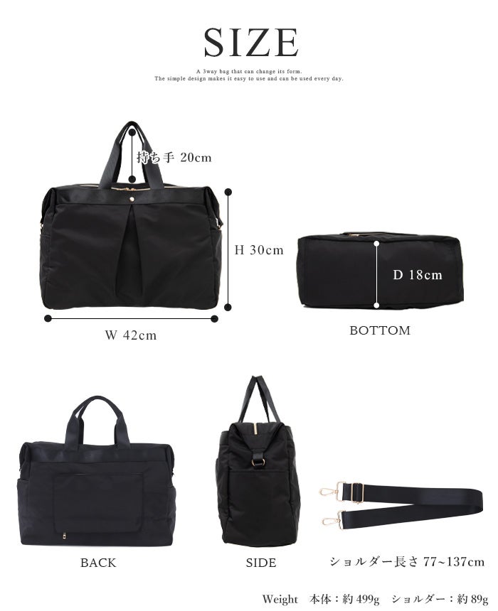 高密度ポリエステル生地を使用した、軽量の3WAYデザインのボストンバッグ。