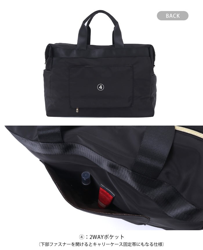 高密度ポリエステル生地を使用した、軽量の3WAYデザインのボストンバッグ。両サイドのスナップボタンで、バッグの形を変えることが可能。小物がバッグの中で迷子にならない7ポケット付き。背面ポケットはキャリーオンになる仕様で機能性も抜群◎旅行バッグとしてはもちろん、ジムなど幅広いシーンで活躍してくれます。