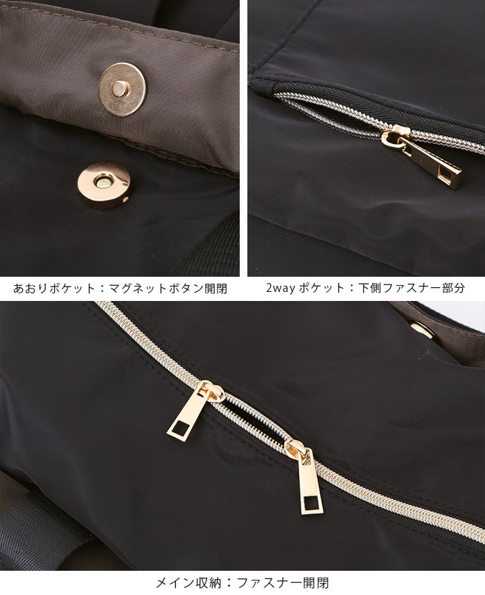 メイン収納:ファスナーポケット×1 オープンポケット×2