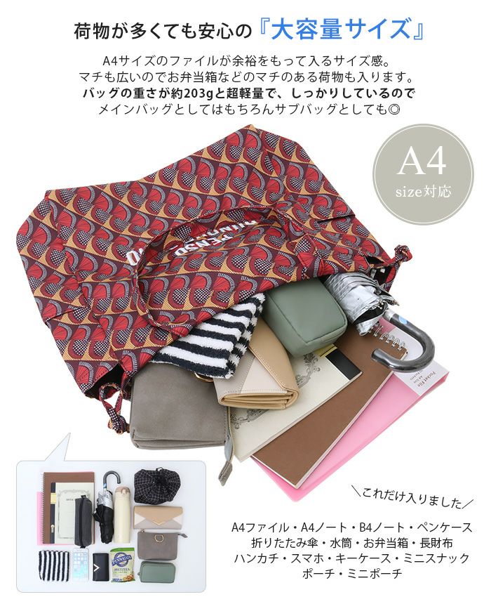 メインバッグとしてはもちろん、サブバッグやエコバッグとしてもお使いいただけます。