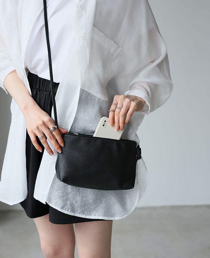 『見た目や機能性はシンプルが良い。』気軽にさっと持てる、軽量設計のショルダーバッグ。コンパクトでありながら、身の回りの荷物がしっかり収納できます。外側と内側にはオープンポケットがあり、小物の整理に便利◎ショルダーは、結び目を変えれば簡単に長さ調整可能。デイリー使いにはもちろん、旅行等にも大活躍してくれます。