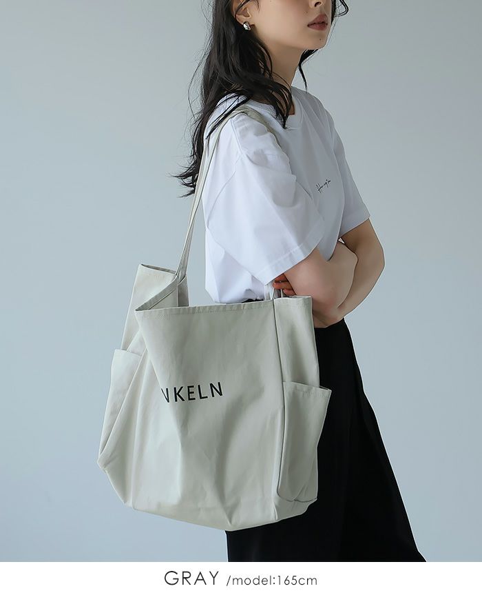 『こなれ感のある大人のキャンバスバッグ。』くったりシルエットのパイピングハンドルロゴトートバッグ。B4サイズのファイルが入るサイズ感。マチも広く大容量なので、マルシェバッグやサブバッグとしても◎内側のポケットに折りたたんで収納でき、軽くてコンパクトに持ち運びできるので、手持ちのバッグに入れておくと便利です。