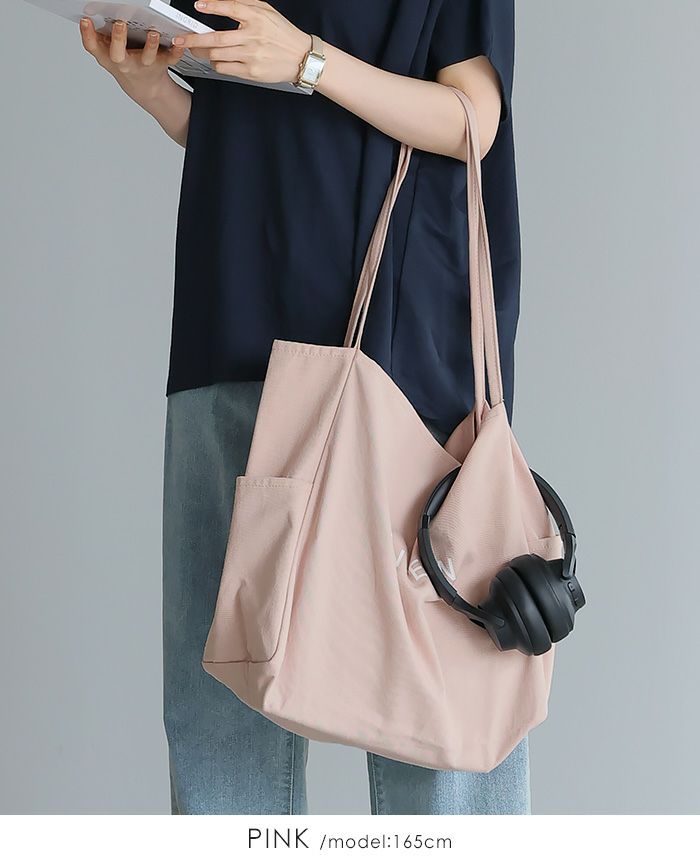 くったりシルエットのパイピングハンドルロゴトートバッグ。