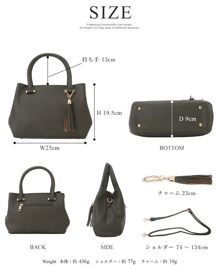 タッセルチャーム付き2WAYトートバッグ