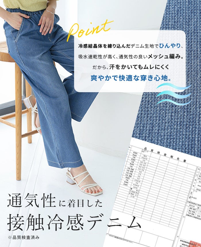 他の画像を見る デニム ワイドパンツ 接触冷感 速乾 UVカット レディース ボトムス ジーンズ L LL ゆったり 大きいサイズ 体型カバー[24SP][メール便不可] クーリッシュデニムワイドパンツ 価格 ¥ 4,950 税込 カートに入れる お気に入りに登録する
