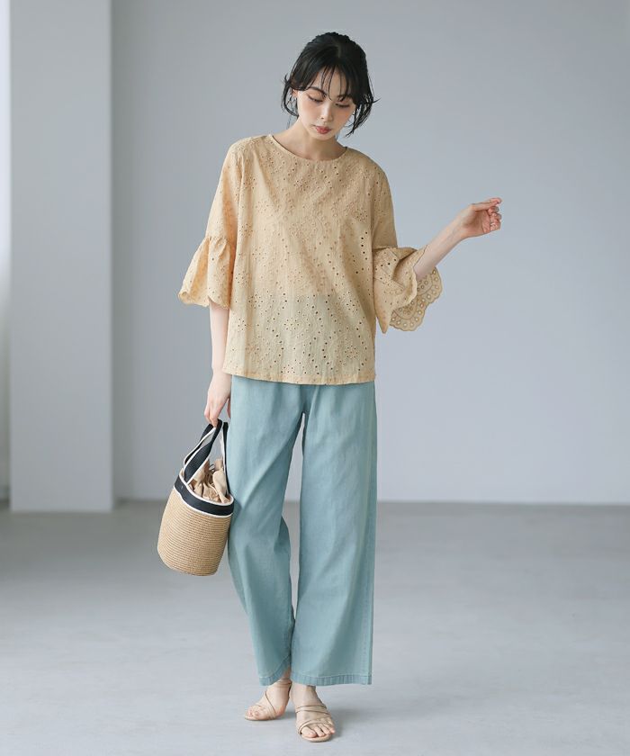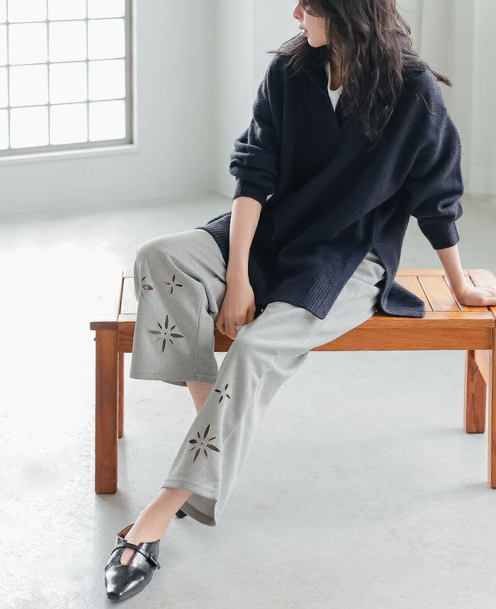 フラワーアイレットパンツ