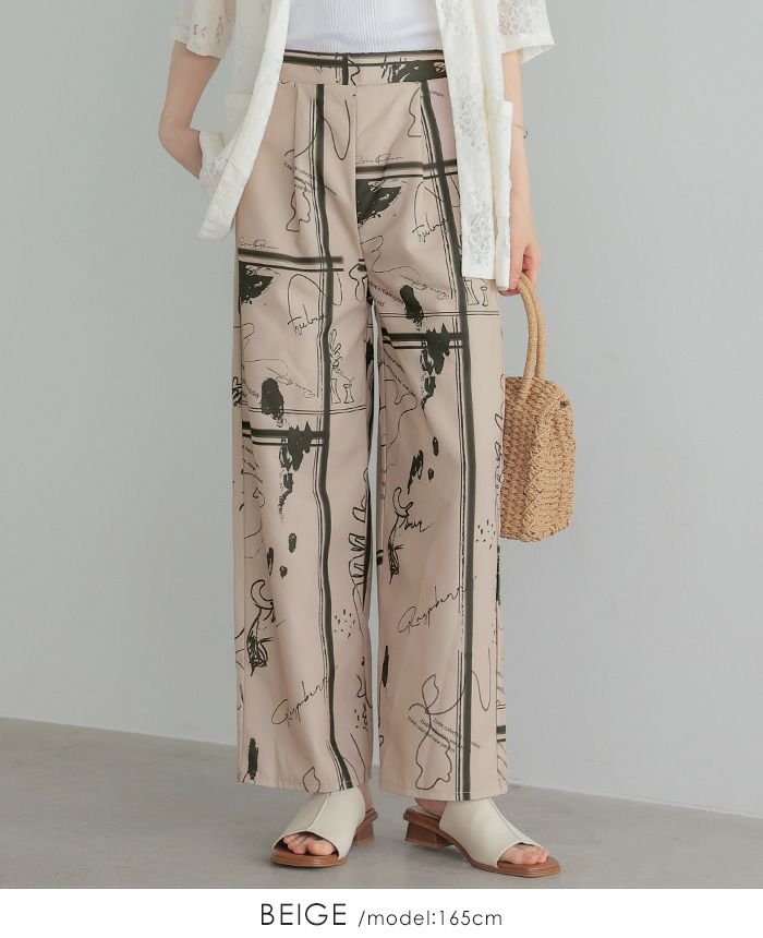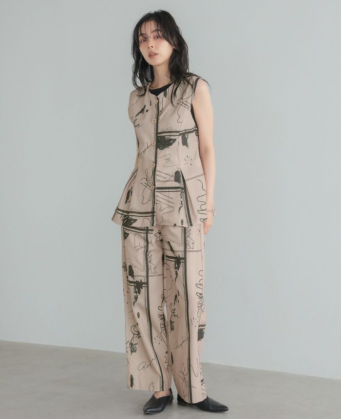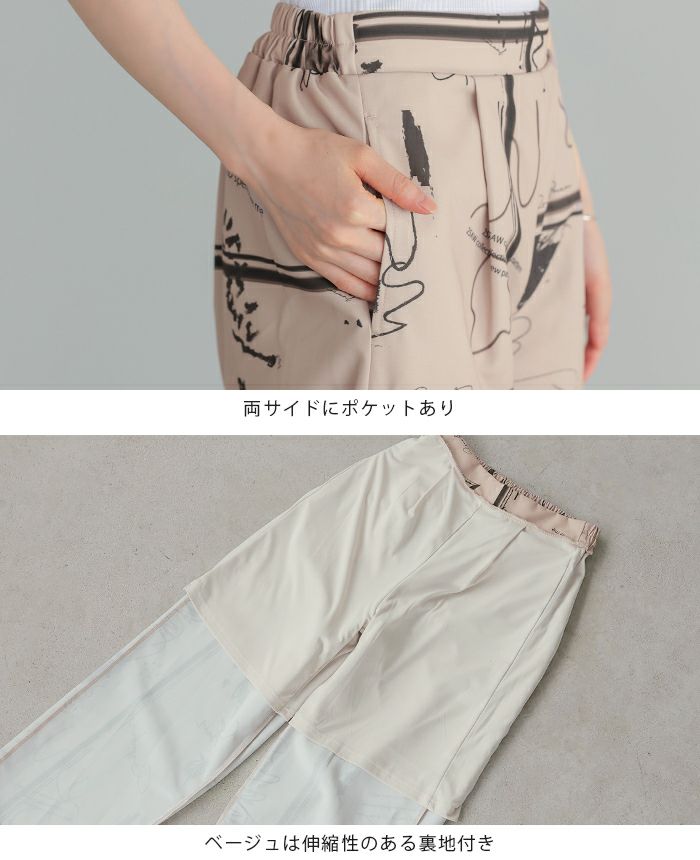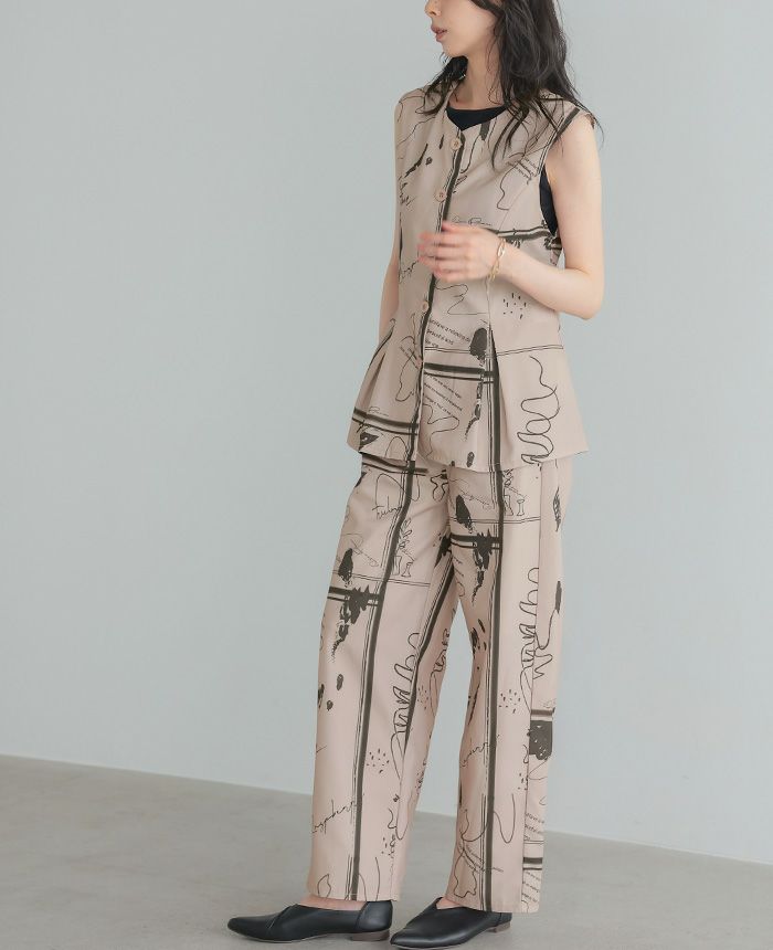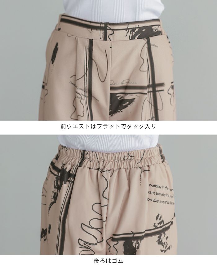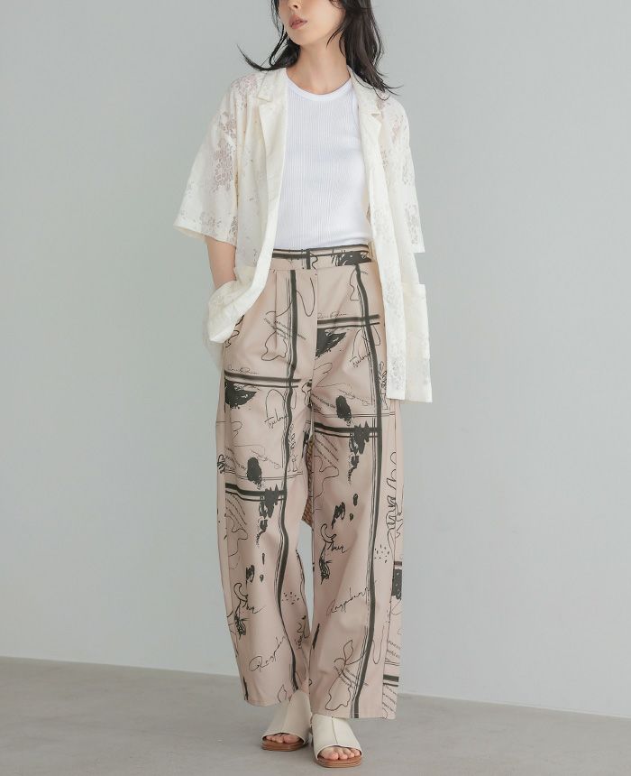 リネンタッチ幾何学柄パンツ