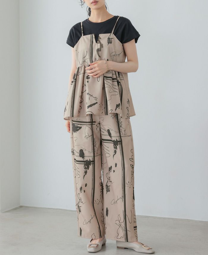 カットジョーゼットタックパンツ