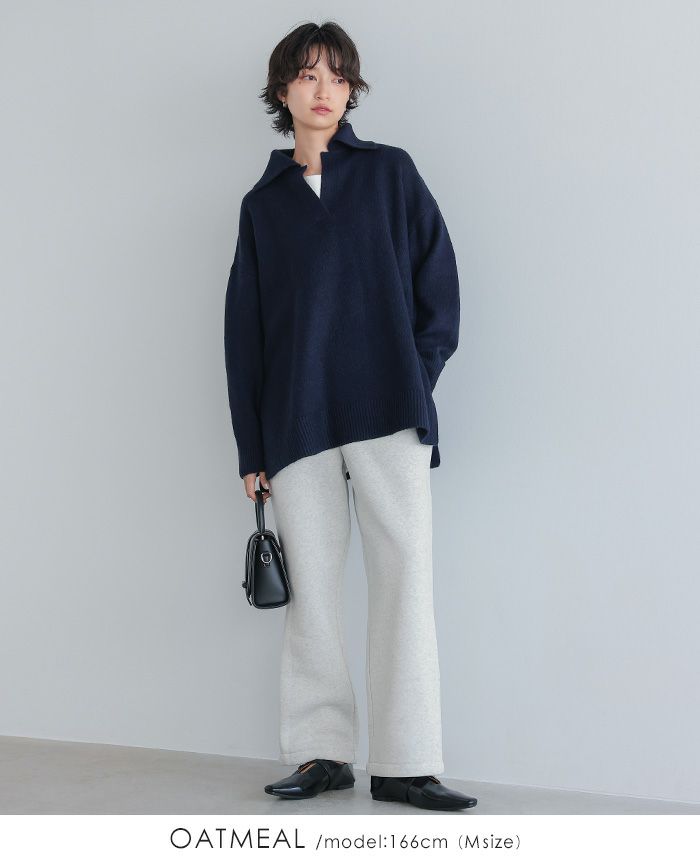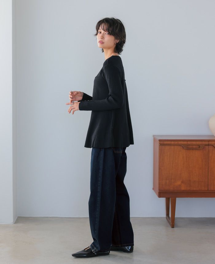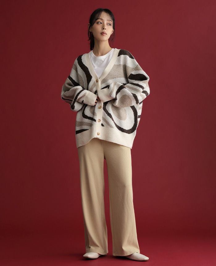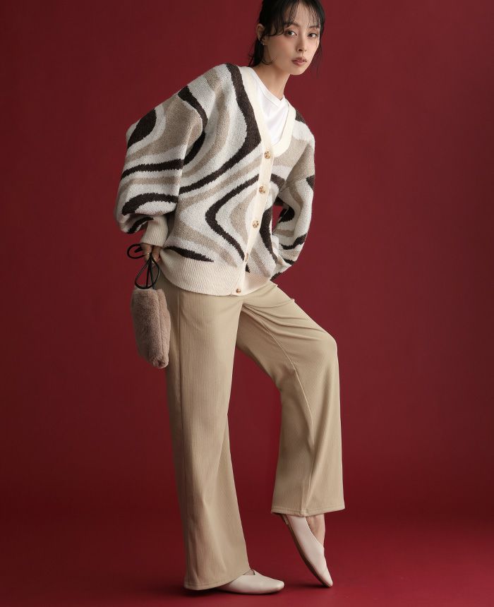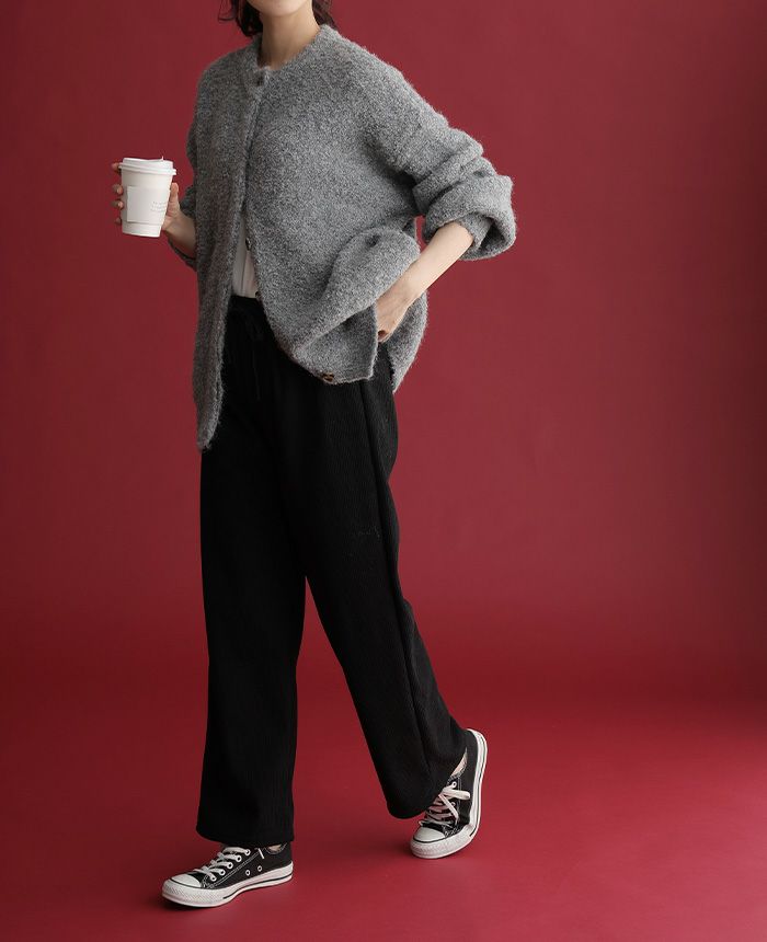 飾りボタンニットワイドパンツ