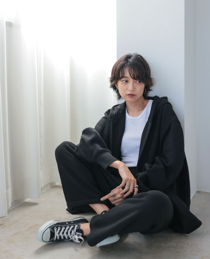 裾スナップスウェットパンツ