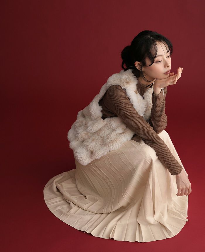 マシュマロスエードランダムプリーツスカート