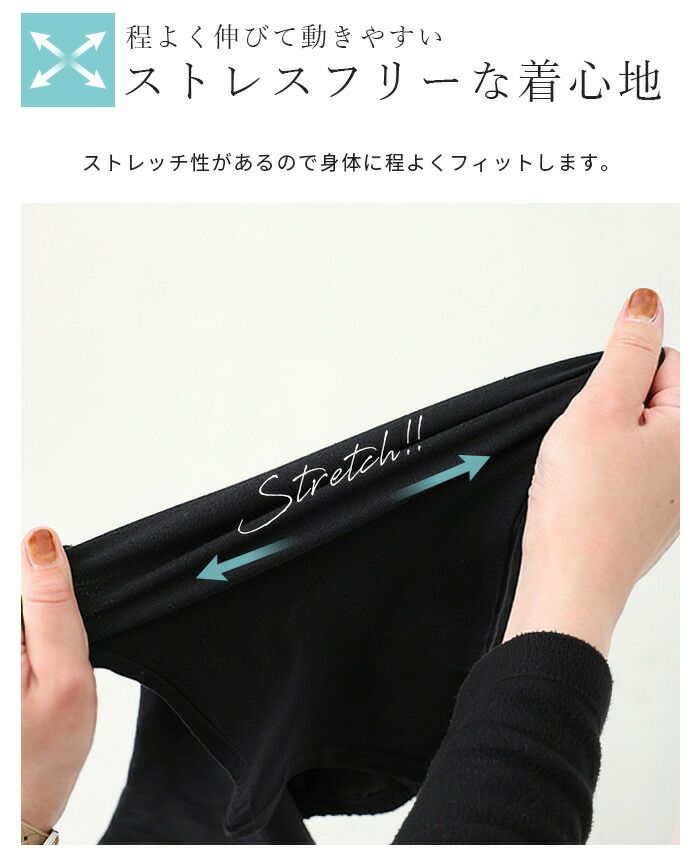 表に響きにくい薄手生地で、ストレッチ性が高くストレスフリー。