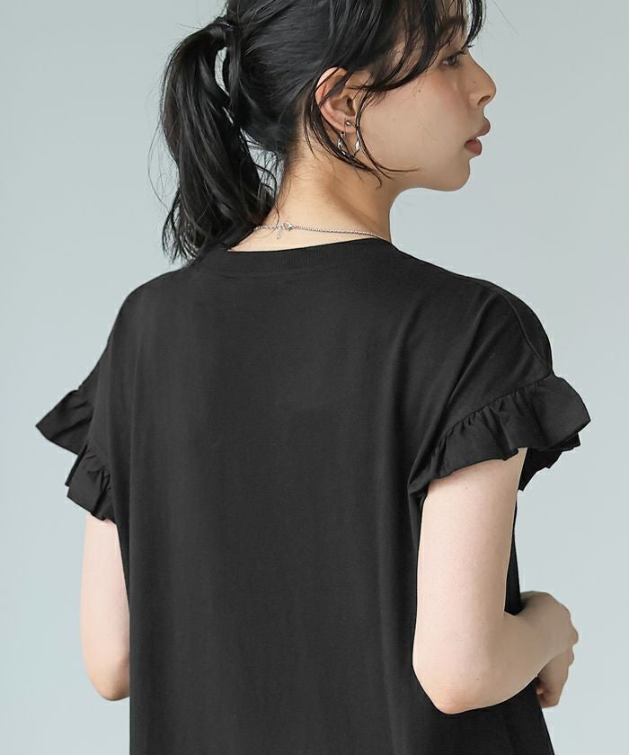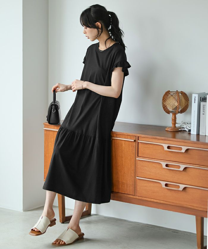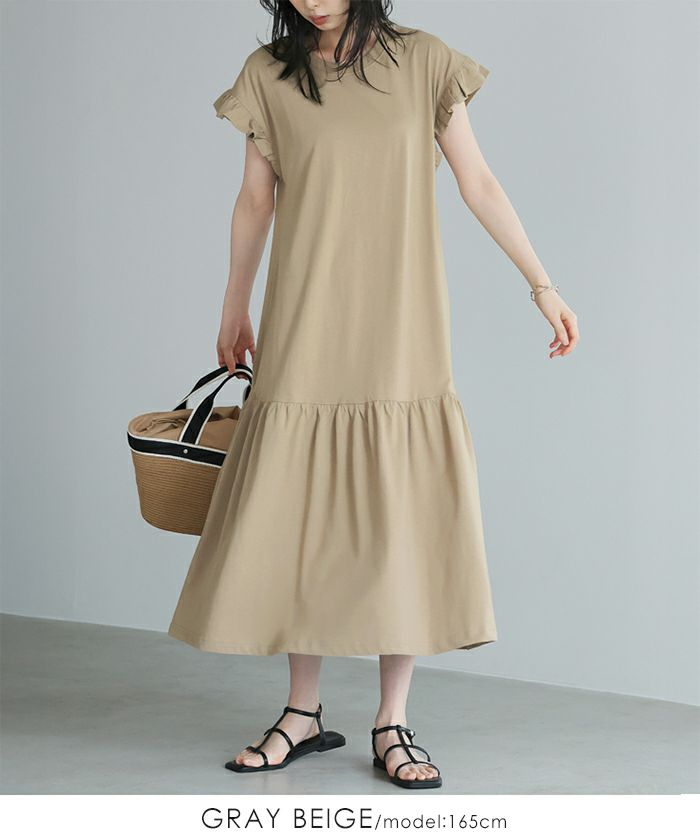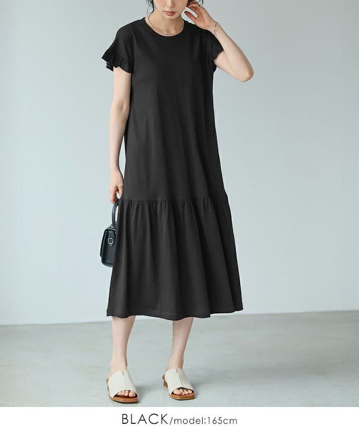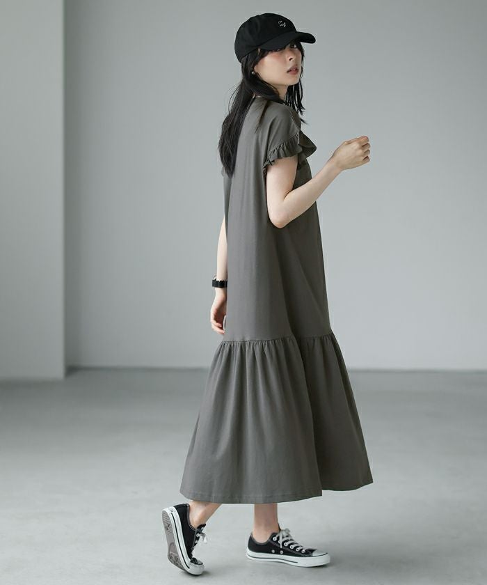 ダブルガーゼ フリル袖ワンピース