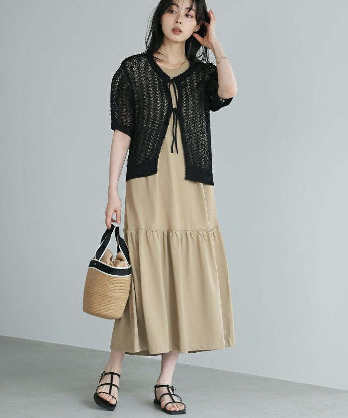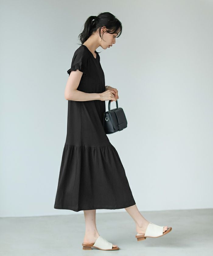 冷感カノコ肩タック後フレアワンピ