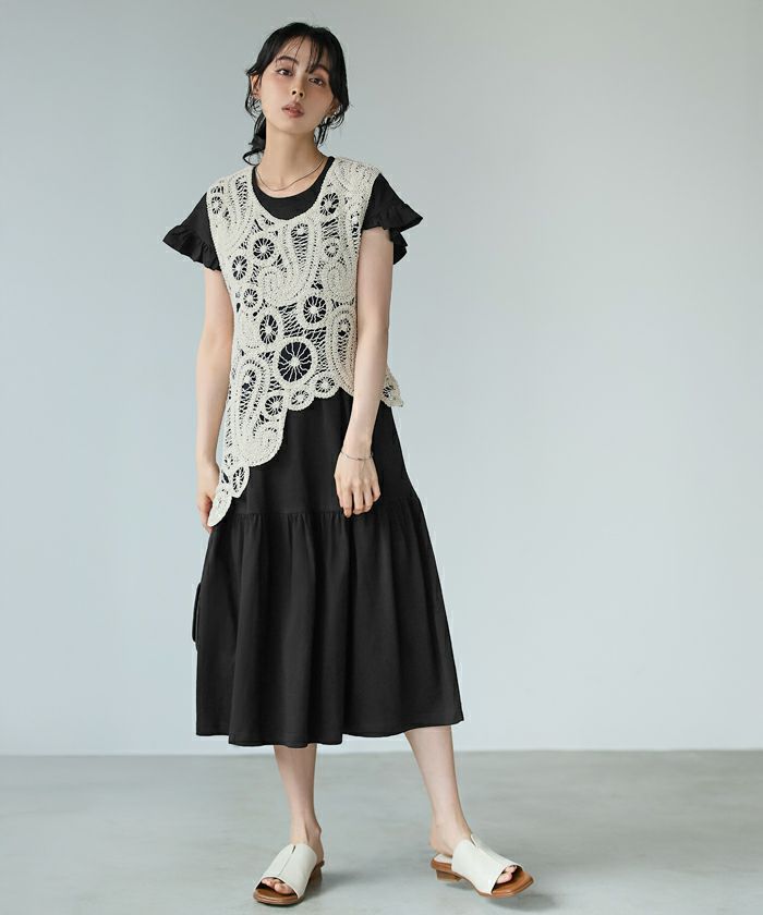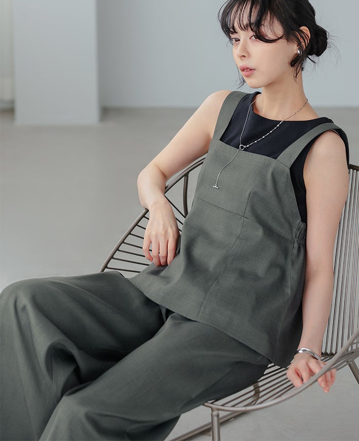 チュールベスト×リネンタッチオールインワン