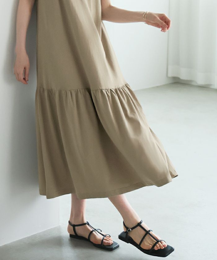 袖フレアノースリーブワンピース