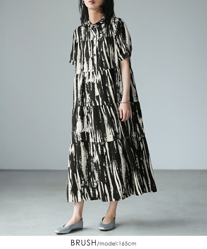 プリントティアードワンピ
