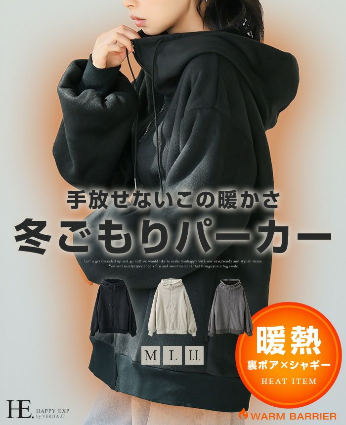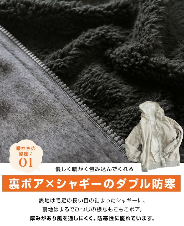 表シャギー裏ボアハイネックパーカー