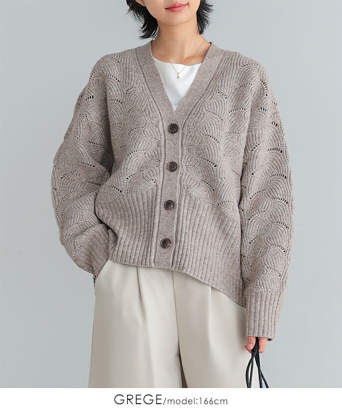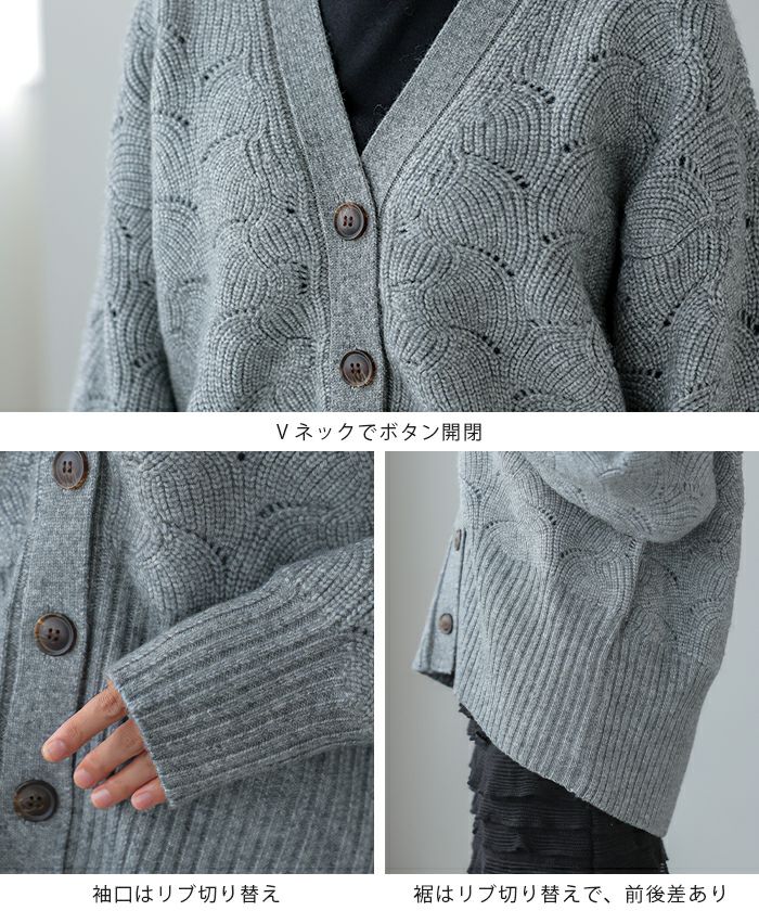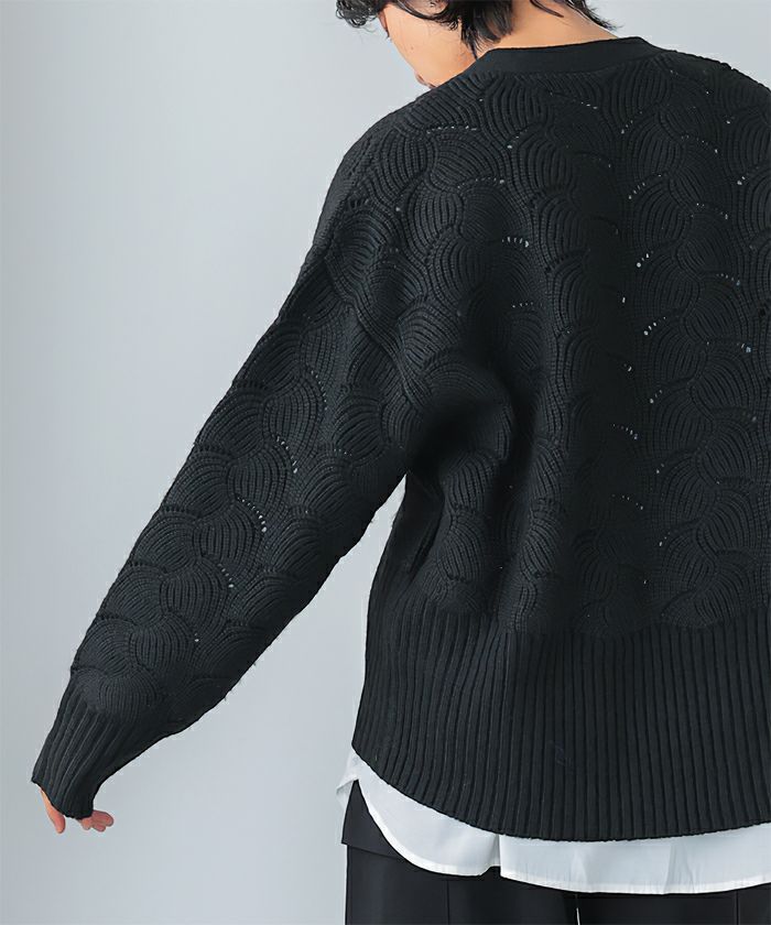柄編みニットカーディガン