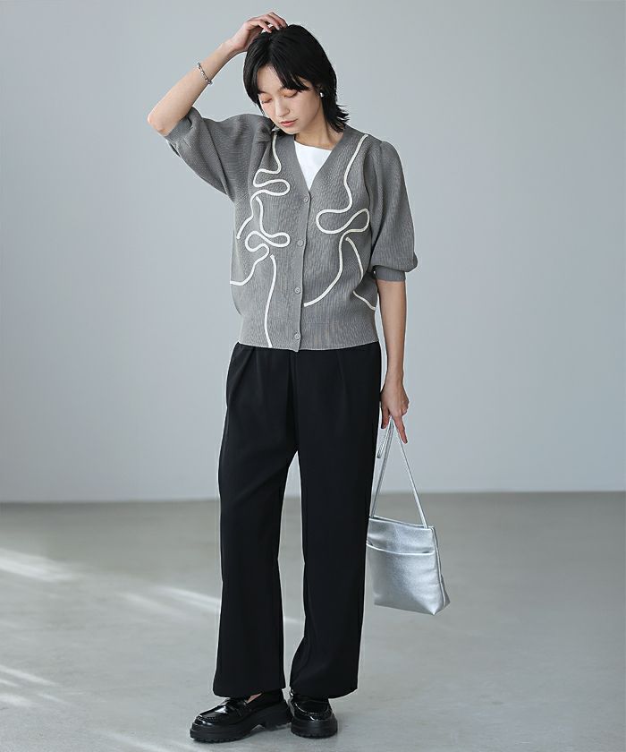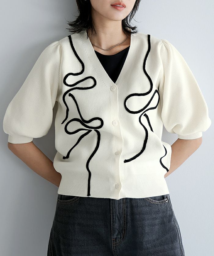 リボンテープ半袖ニットカーディガン