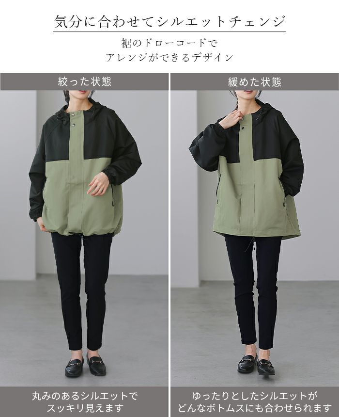 裾はドローコード付きで、気分に合わせてシルエットが変えられます。
