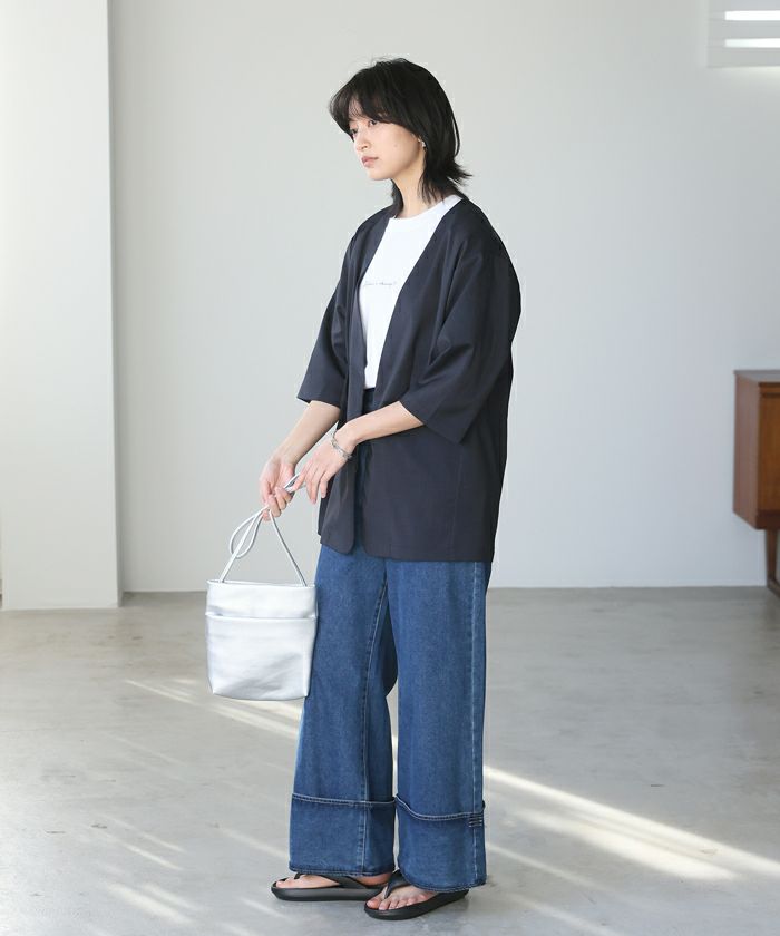 ボタンレスなので、さっと気軽に羽織れます。