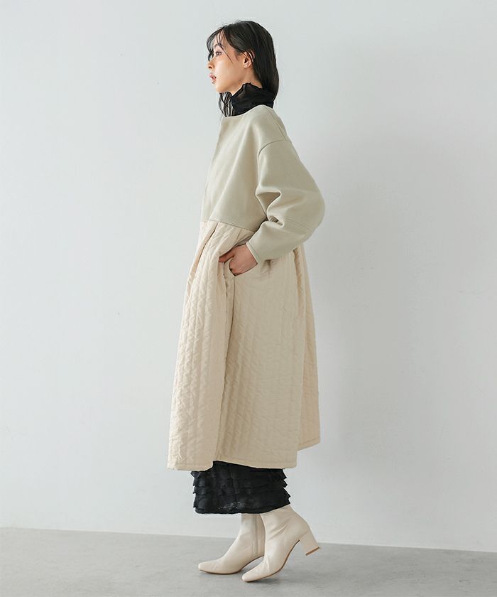 上部分はフェイクウール、下部分はキルト生地で切り替えたデザイン。