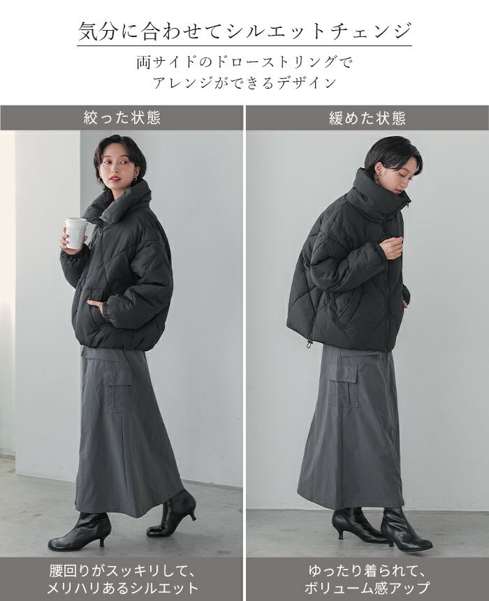 裾はドローストリング付きで、気分に合わせてシルエットチェンジが可能。