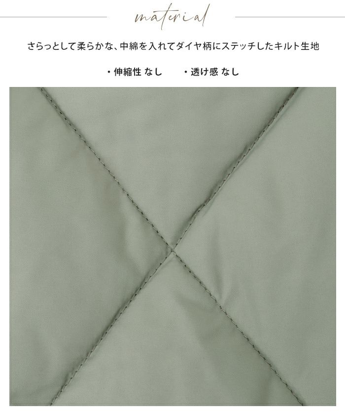 生地感:さらっとして柔らかな、中綿を入れてダイヤ柄にステッチしたキルト生地