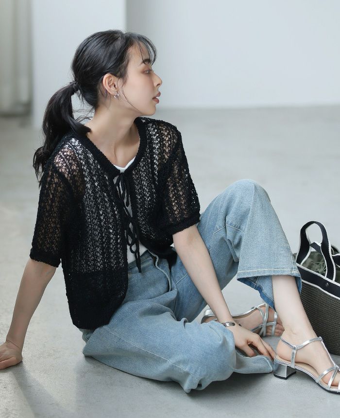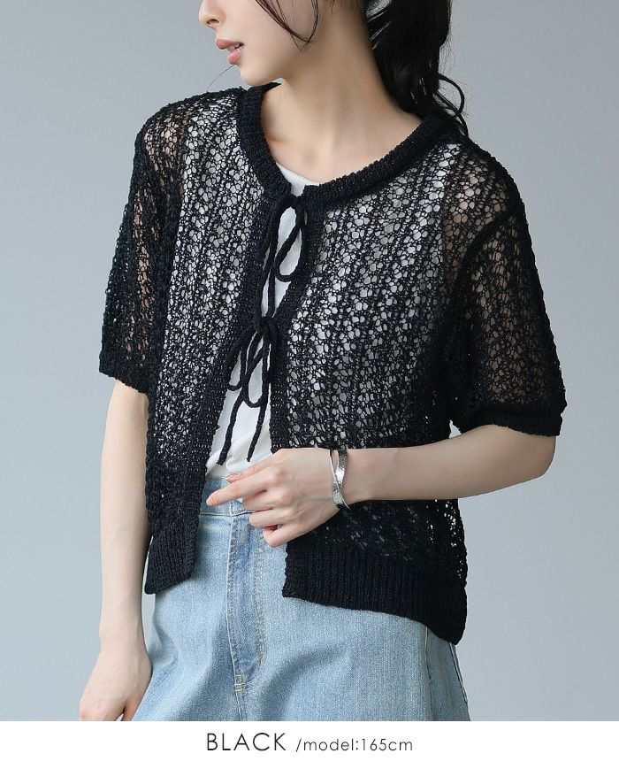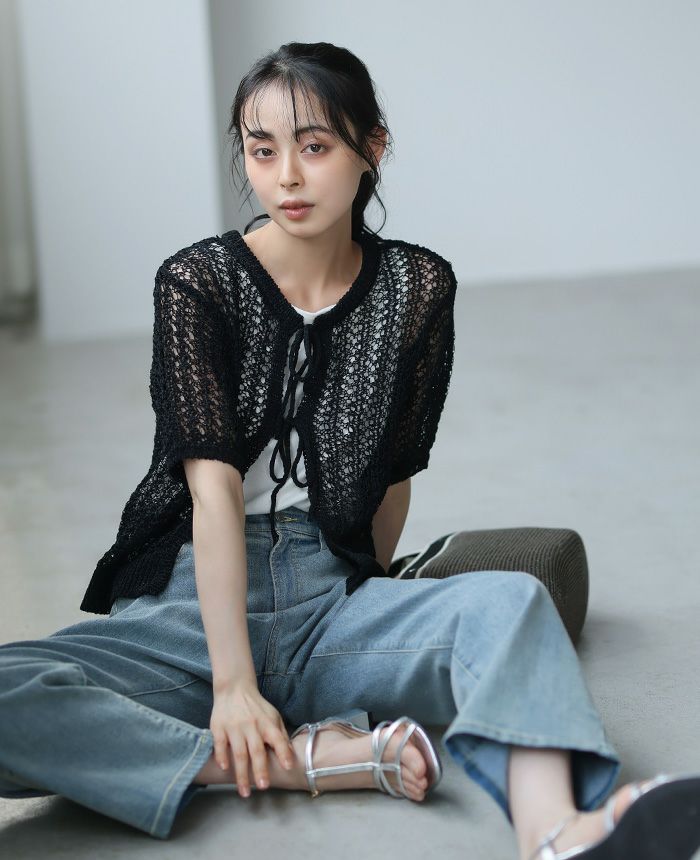 透かし編みリボン付きカーデ