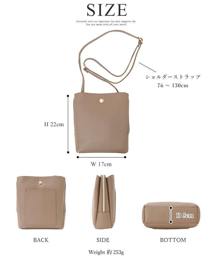 フェイクレザー3層軽量ショルダーバッグ