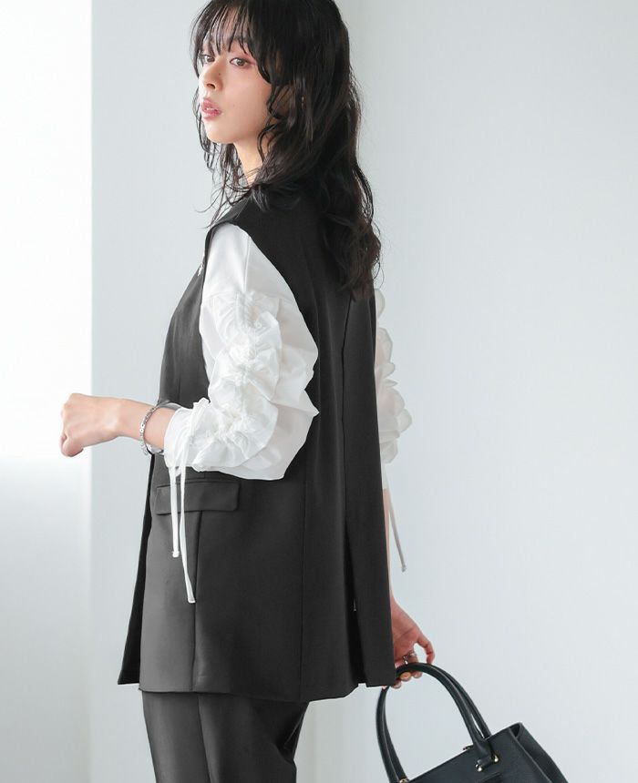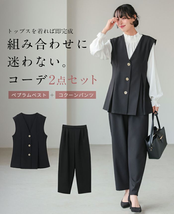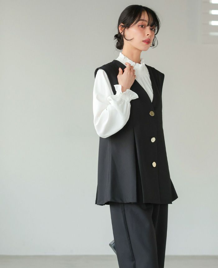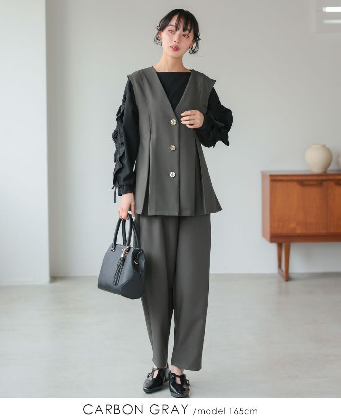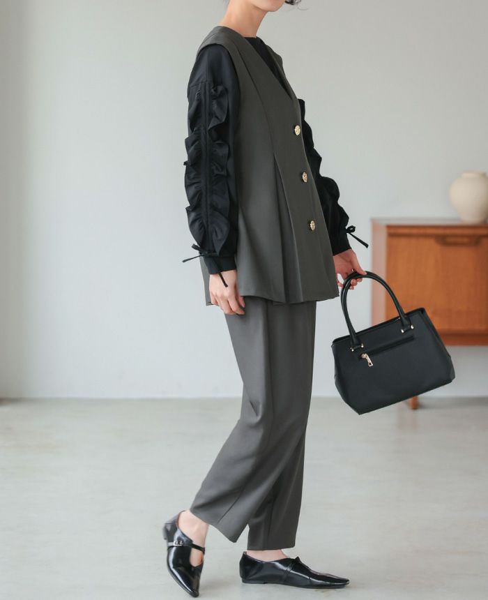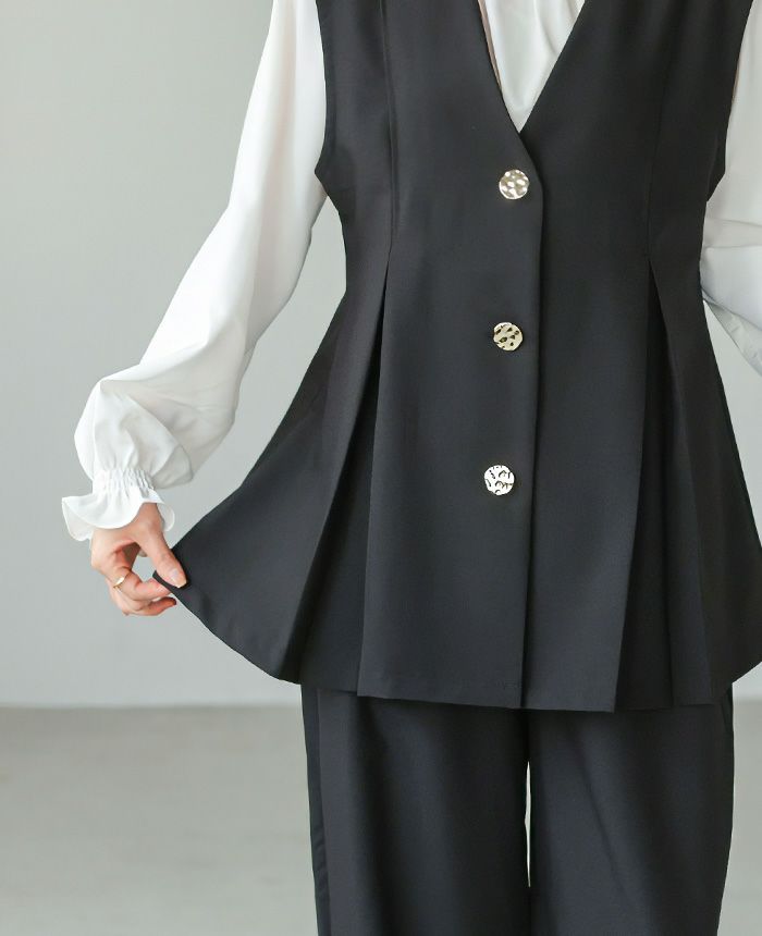 ゴールドボタンベスト&コクーンパンツセットアップ