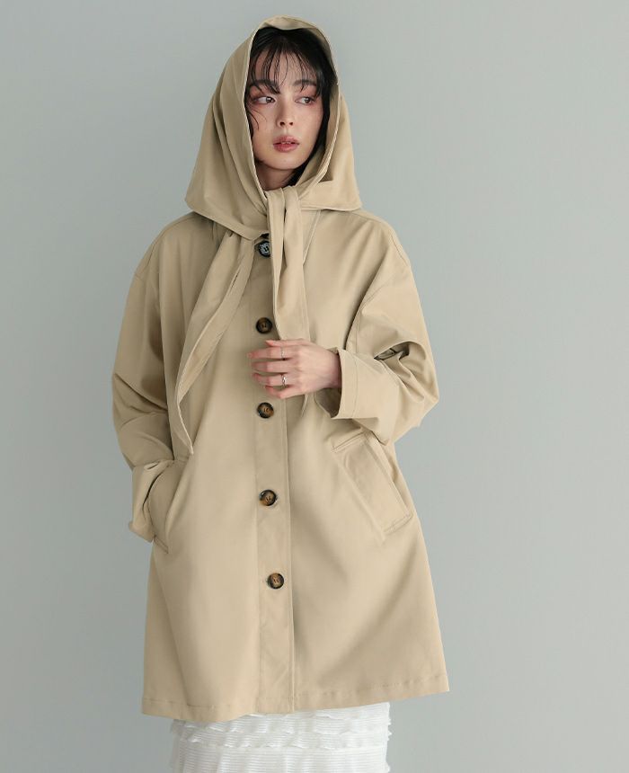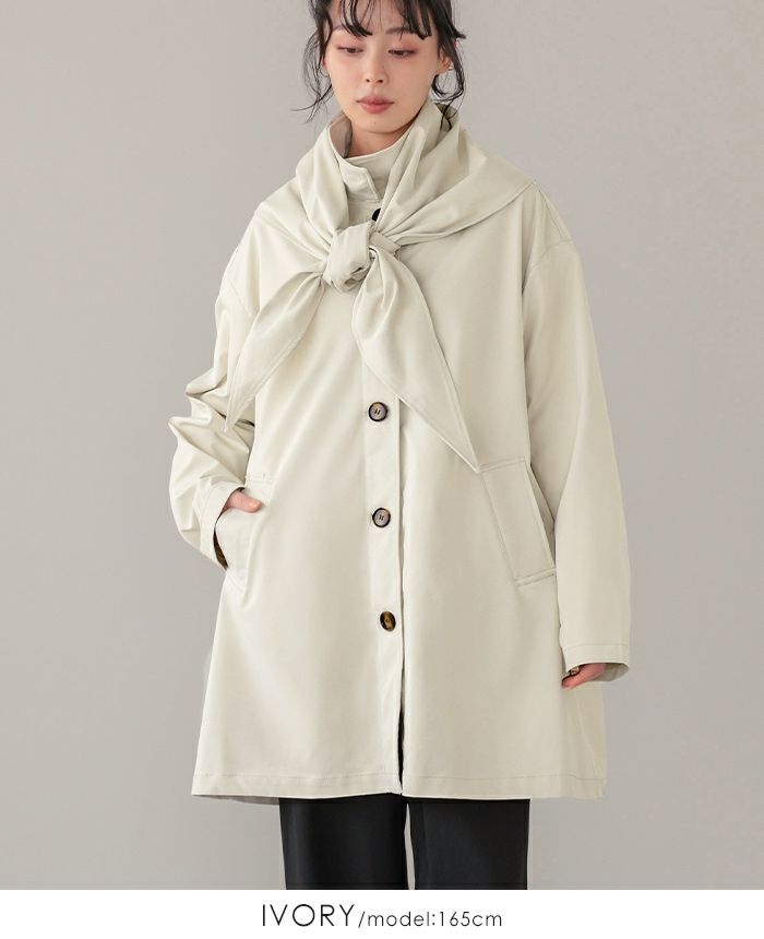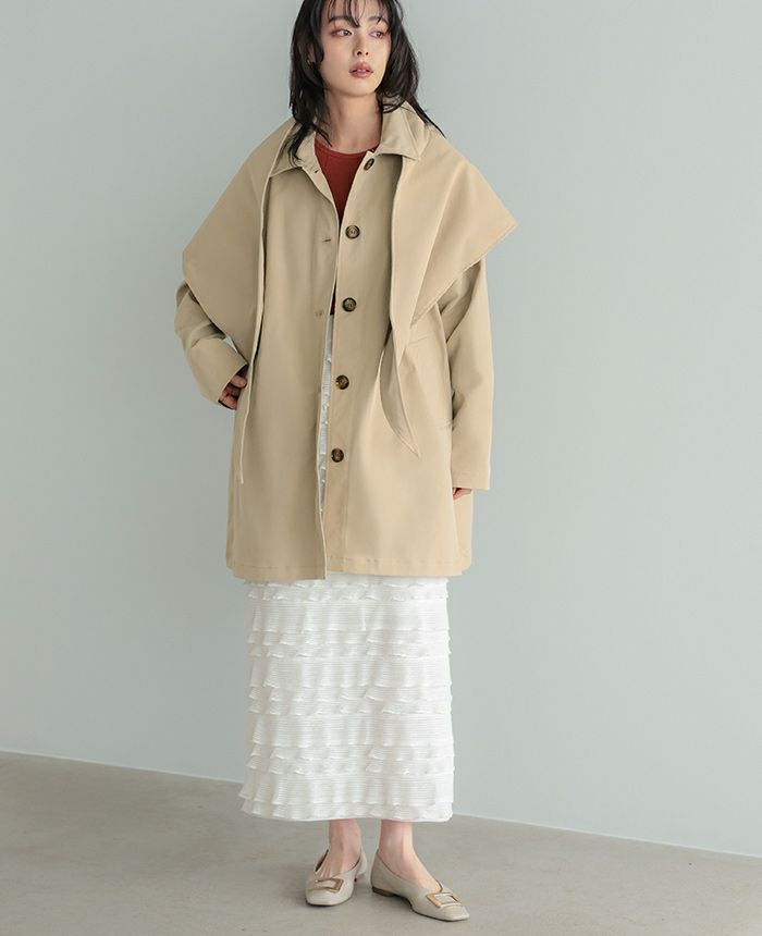 スカーフ付ステンカラーコート