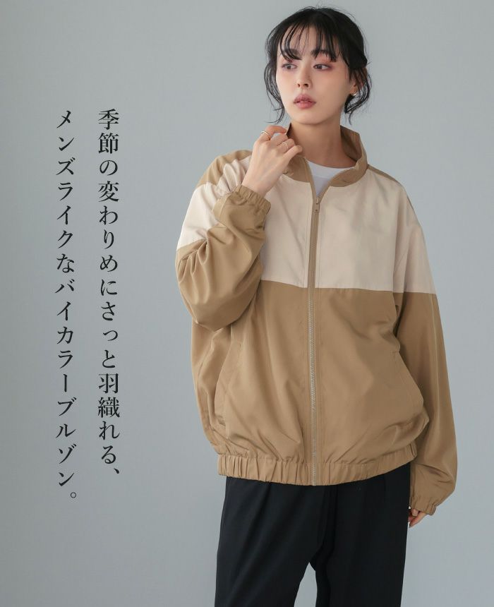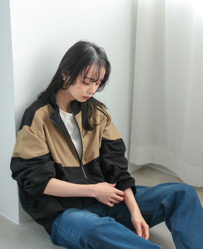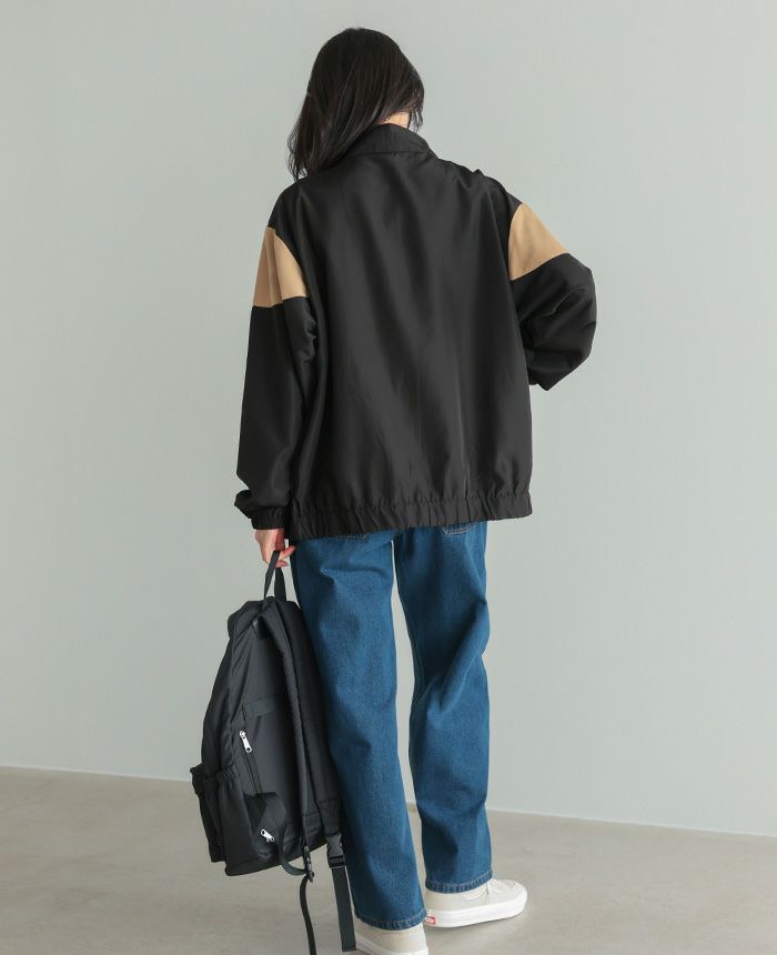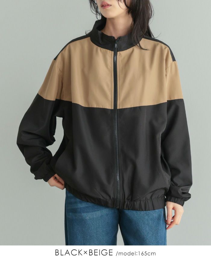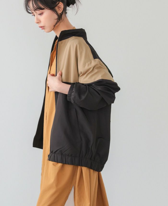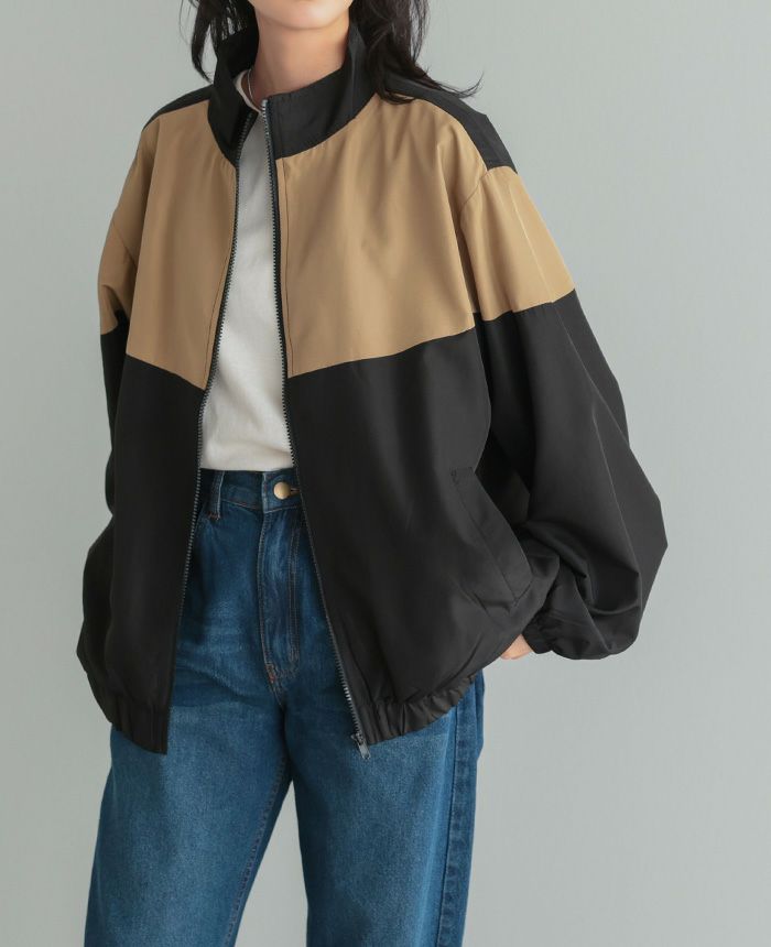配色スタンドカラージップアップブルゾン