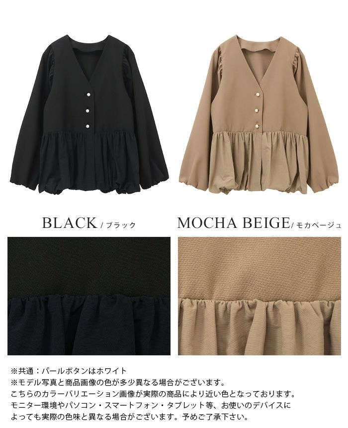 パフスリーブ切替トップス
