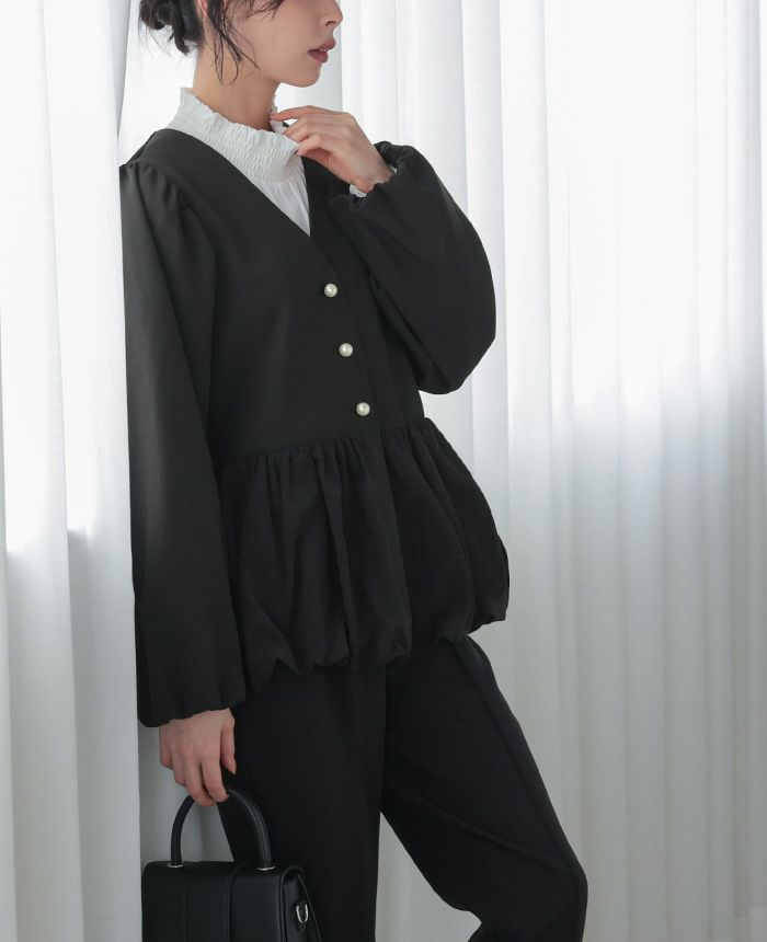 袖シャーリングフリルトップス