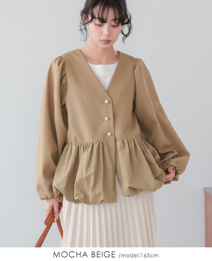 ピーチボリュームスリーブブラウス