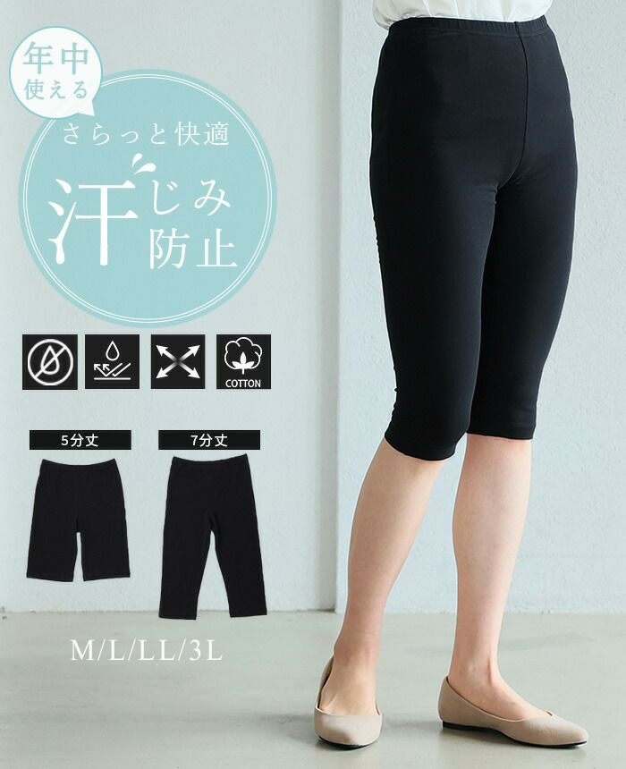 レギンス インナーパンツ 汗じみ 綿素材 レディース ボトムス 汗じみ防止 スポーツ 大きいサイズ L LL 3L[24SU][メール便可(1点まで)][M便 1/1]