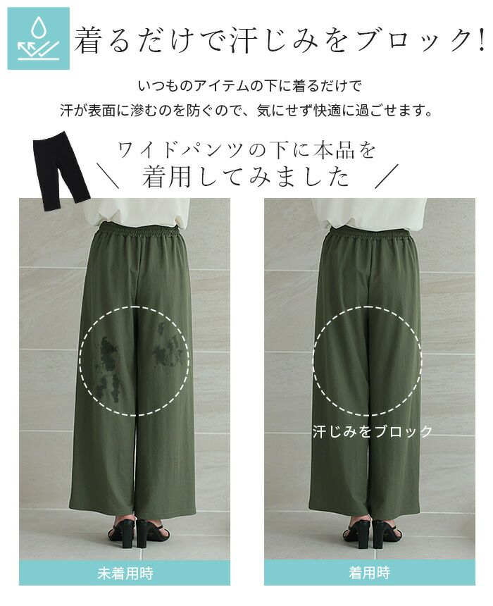 下にこのインナーレギンスを穿けば、太腿や膝裏の汗をブロック。