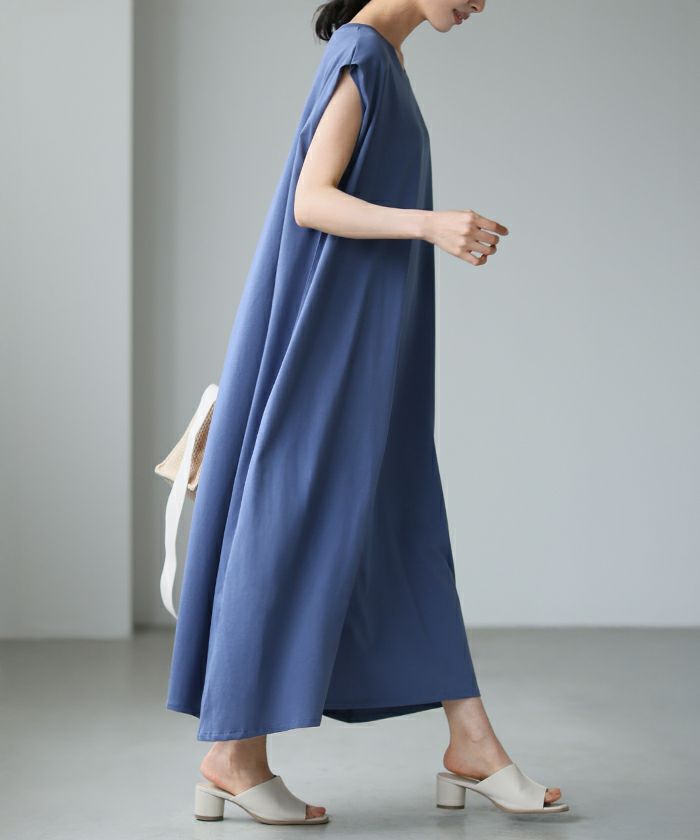締め付け感のない、ゆったりとしたワンピース。動くたびに揺れる、美しいフレアシルエット。肩の内側にタックを入れたデザインがアクセントに。さらっとした綿100%生地で、暑い季節も快適な着心地。デイリーからお出掛けまで活躍してくれる、シンプルなアイテムです。