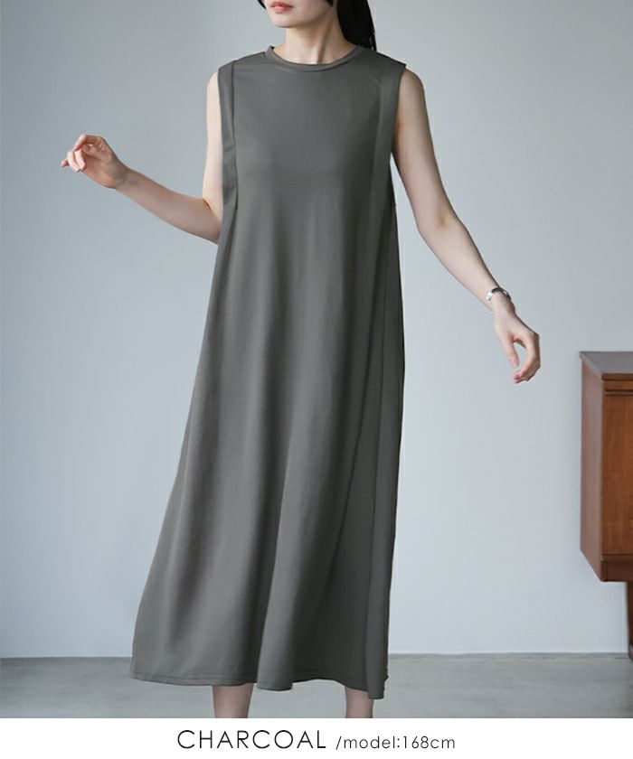 着た瞬間、ひんやりと涼しい着心地が実感できるロング丈のワンピ。