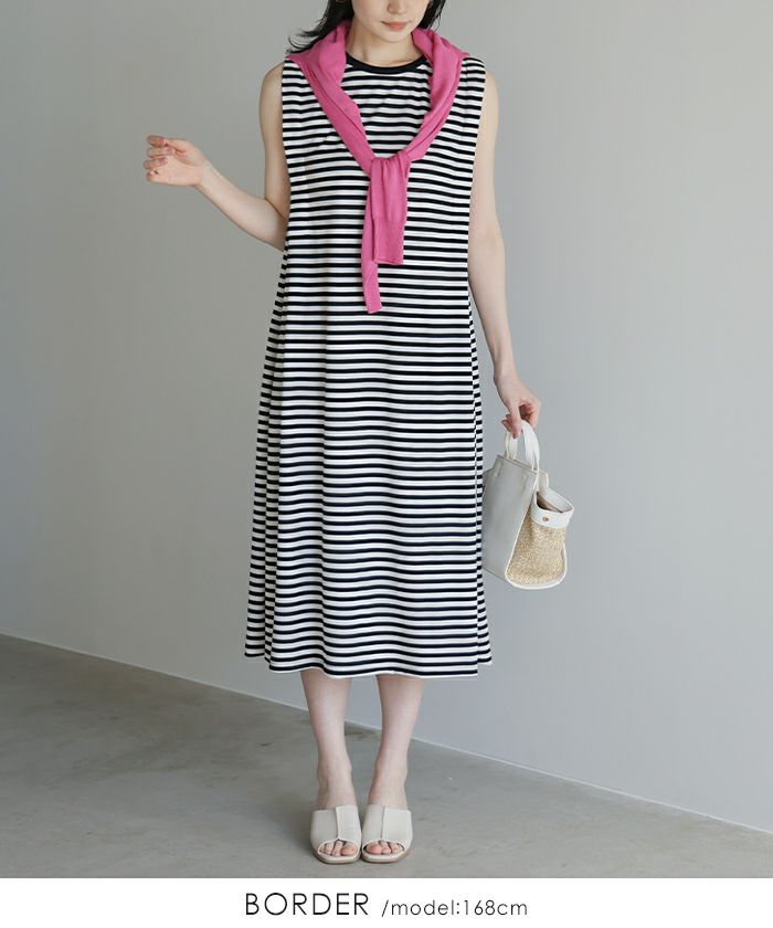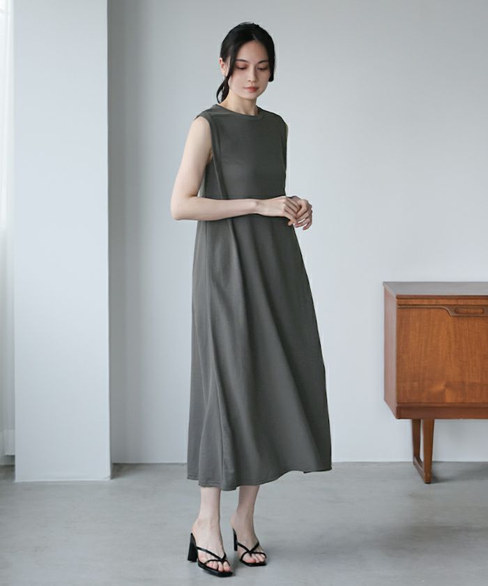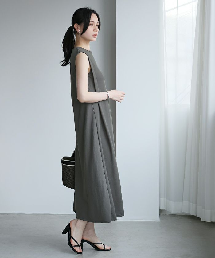 着た瞬間、ひんやりと涼しい着心地が実感できるロング丈のワンピ。程よいボリュームのフレアシルエットが大人っぽい。肩口にタックを入れて立体感を出し、肩から胸元を美しく見せてくれるデザイン。さらっとした鹿の子生地は伸縮性があるので着心地抜群。普段使いにちょうど良い、着回しやすいアイテムです。
