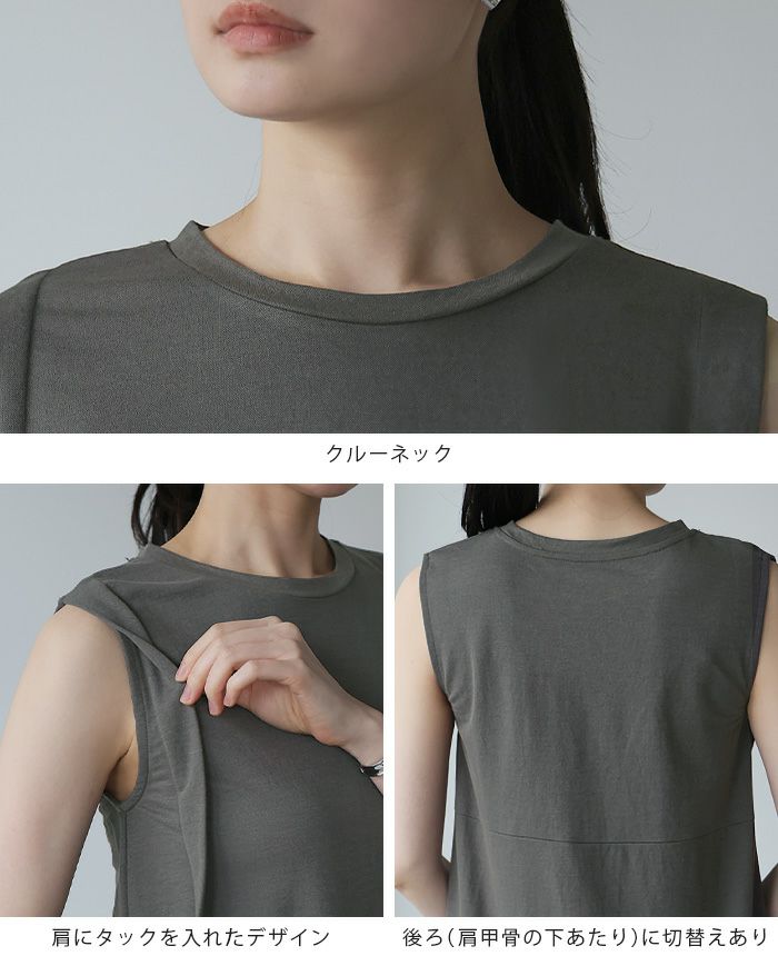 肩口にタックを入れて立体感を出し、肩から胸元を美しく見せてくれるデザイン。