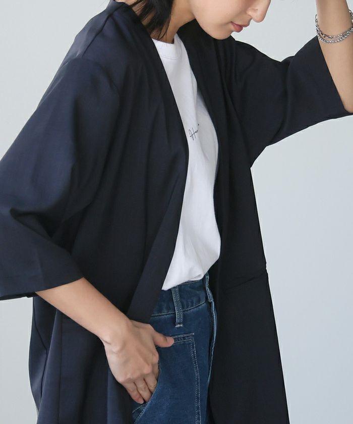 ボタンレスなので、さっと気軽に羽織れます。