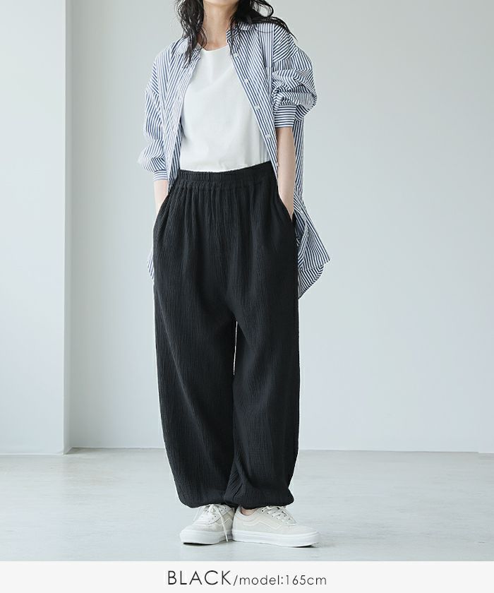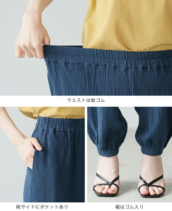 肌に優しい綿100%のダブルガーゼを使ったリラックスパンツ。