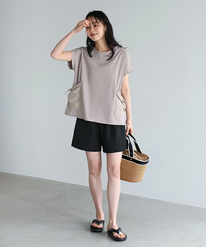 『汗ばむ季節に嬉しい機能付きアイテム!』汗をかいてもすぐに乾く、ドライタッチシリーズ。紫外線カットや接触冷感の機能付きで、スポーツやお出掛けも安心。ウエストゴムのシンプルなショートパンツ。楽な穿き心地で、両サイドにポケット付き。アクティブに動きたい日やリゾート等におすすめのアイテムです。