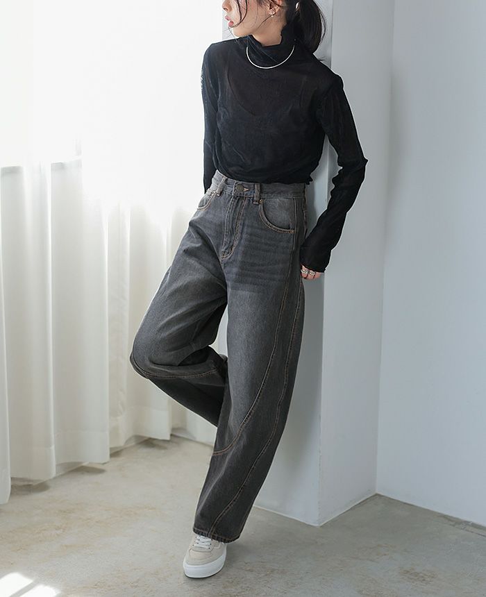 『リラックスできる、大人のコクーンデニム。』 太腿部分にゆとりを出し、裾に向かって窄まった独特なシルエット。フロントに切り替えを入れ、立体的なデザインに仕上げました。 ヴィンテージ加工した綿100%デニム生地で、普段使いにぴったり。トップスはコンパクトなものやショート丈を合わせるとバランスよく着こなせます。こなれ感たっぷりな、大人のカジュアルアイテムです。