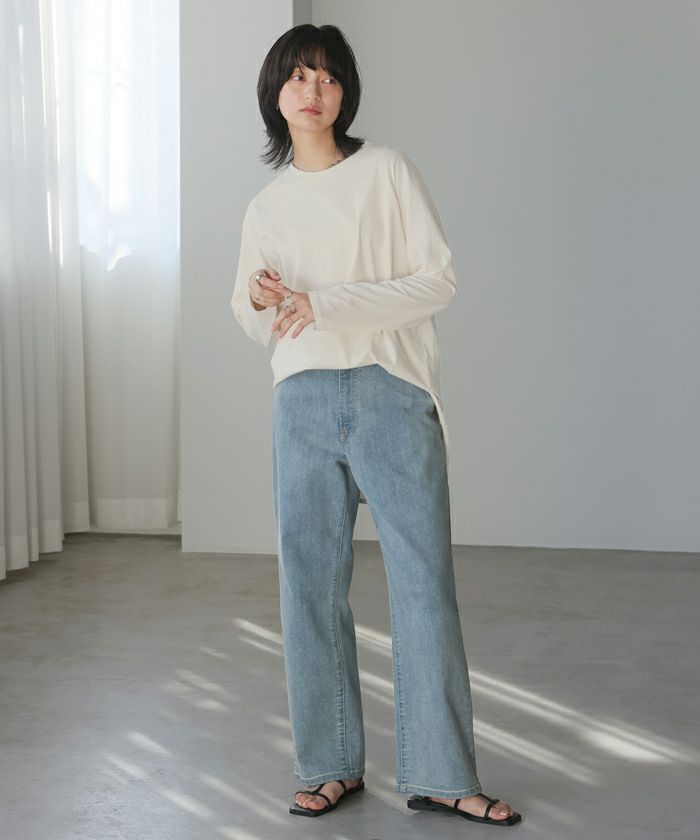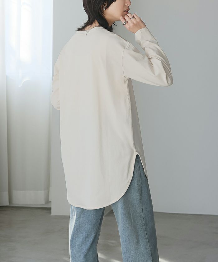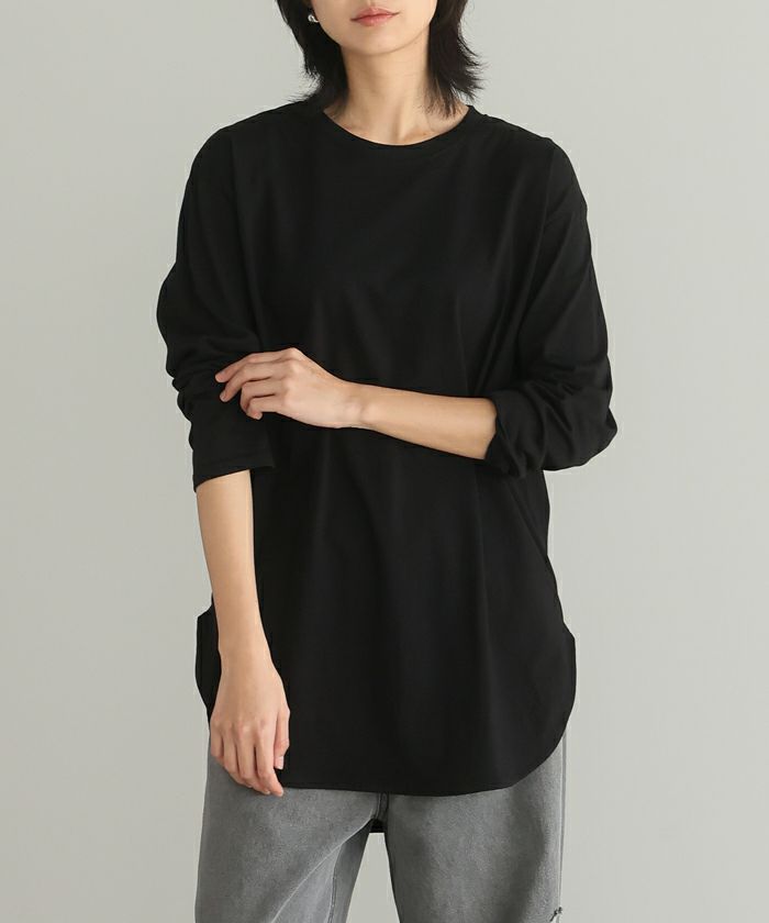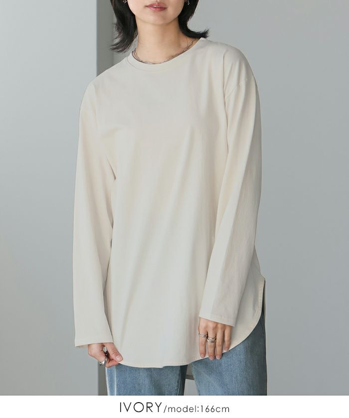 気になる腰回りをしっかりカバーしてくれる、ロング丈の長袖Tシャツ。