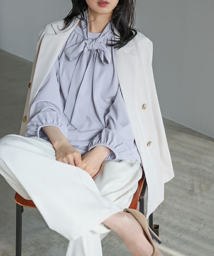 コーデが華やかに見える、ボウタイ付きのブラウス。