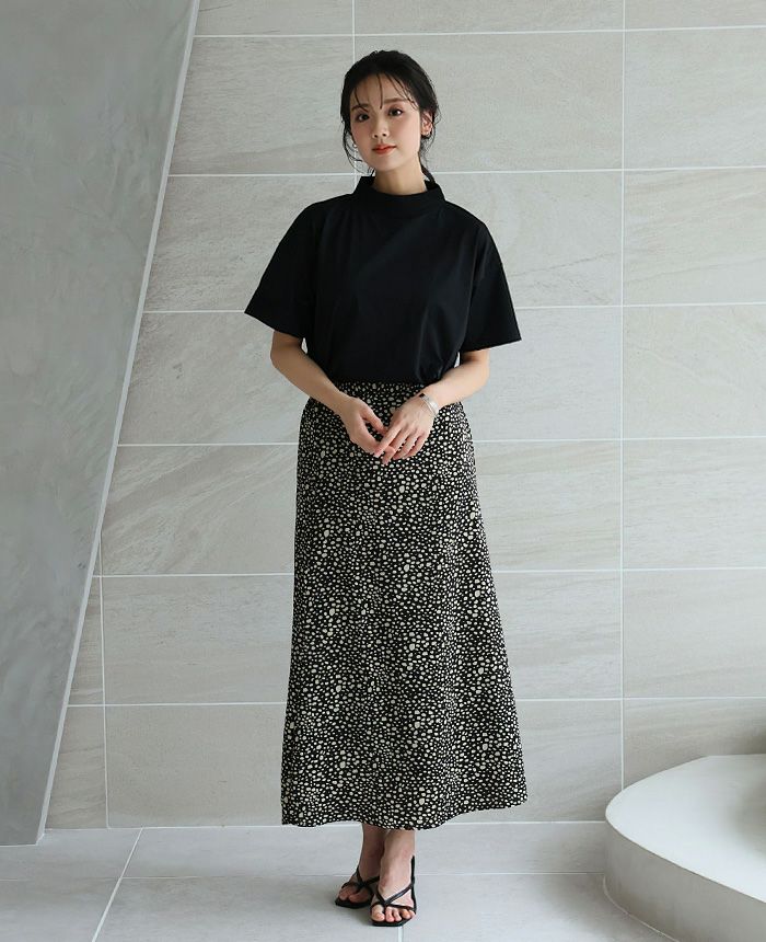首元もしっかりカバーできるモックネックのトップスは、